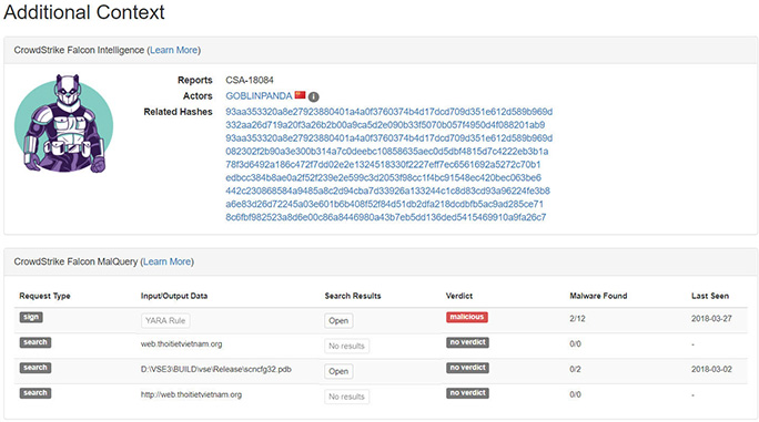 Obtenha informações sobre quem pode estar te atacando e como se defender contra eles. Saiba instantaneamente se o malware está relacionado a uma família de malware ou campanha de ataque maior e expanda automaticamente a análise para incluir todos os malwares relacionados.