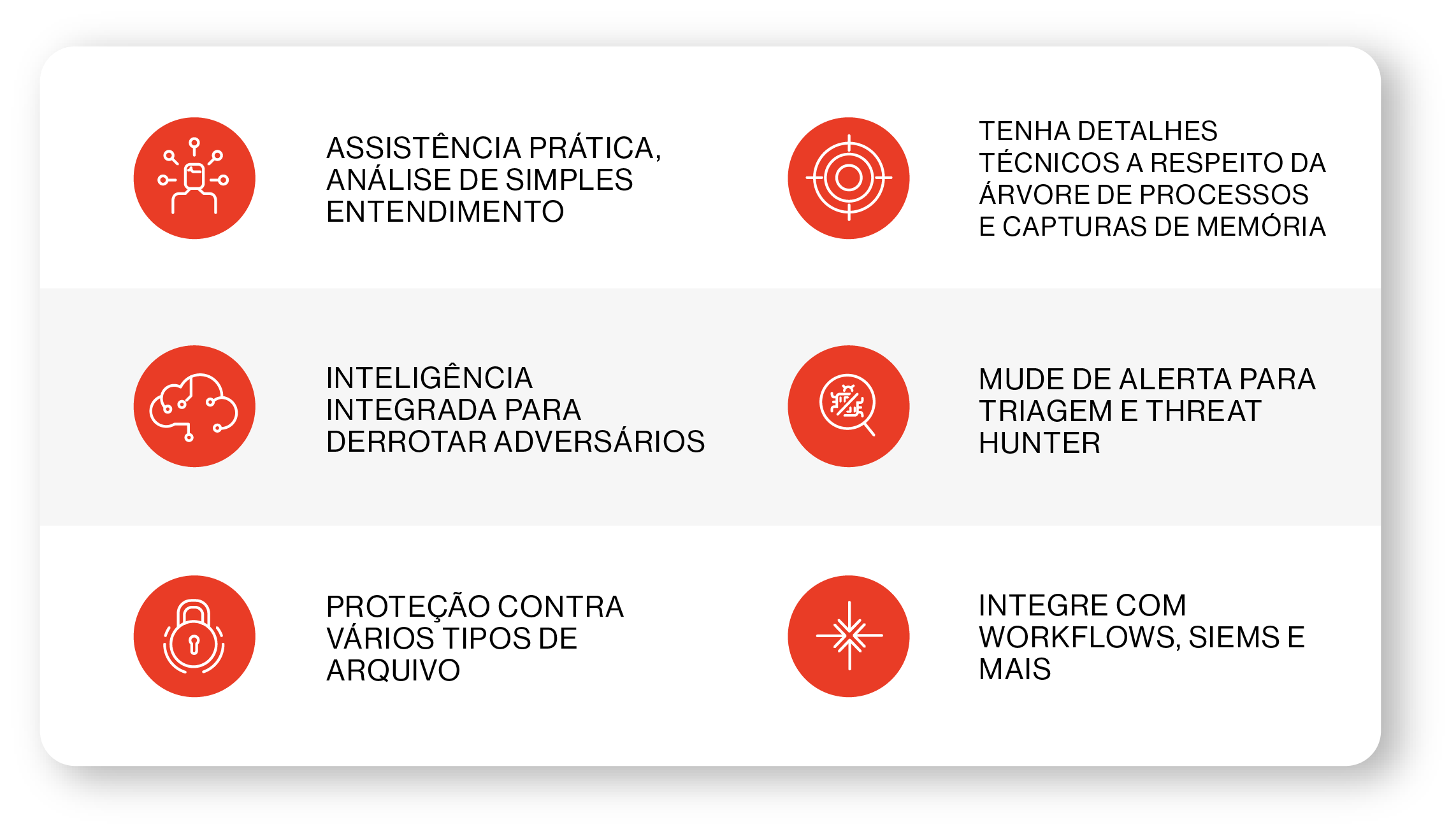 Economize tempo e torne todas os times de segurança mais eficazes com relatórios fáceis de entender, IOCs acionáveis e integração perfeita.